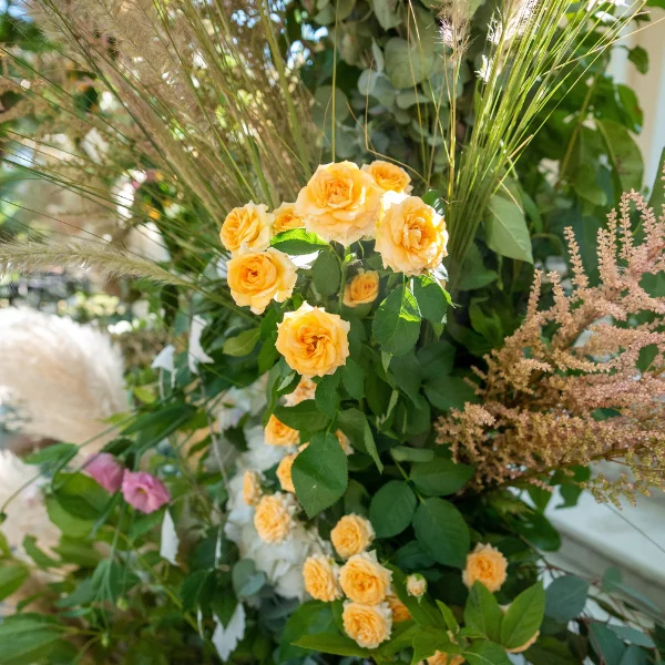 Diseñados con flores de temporada como rosas, lirios y peonías.
