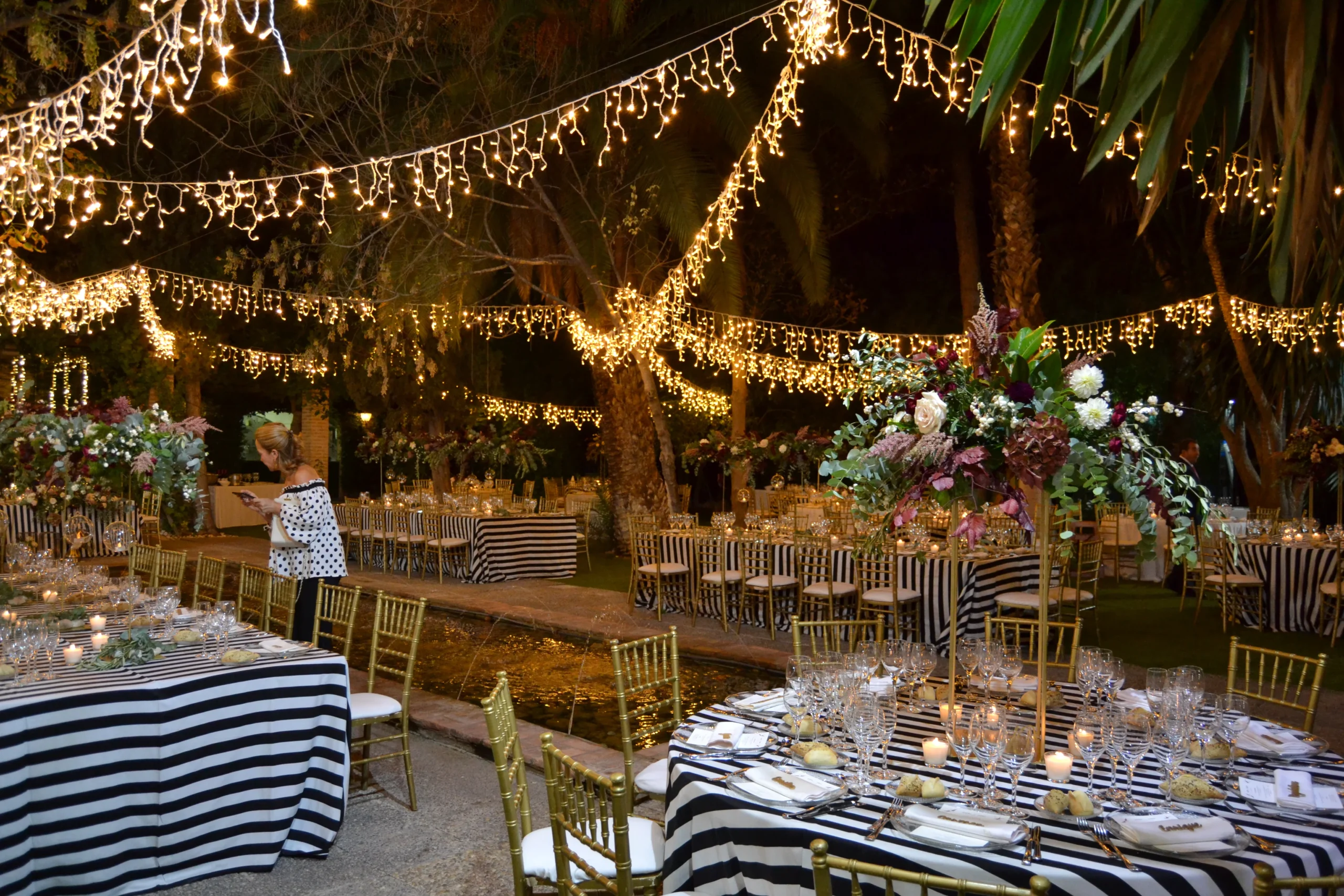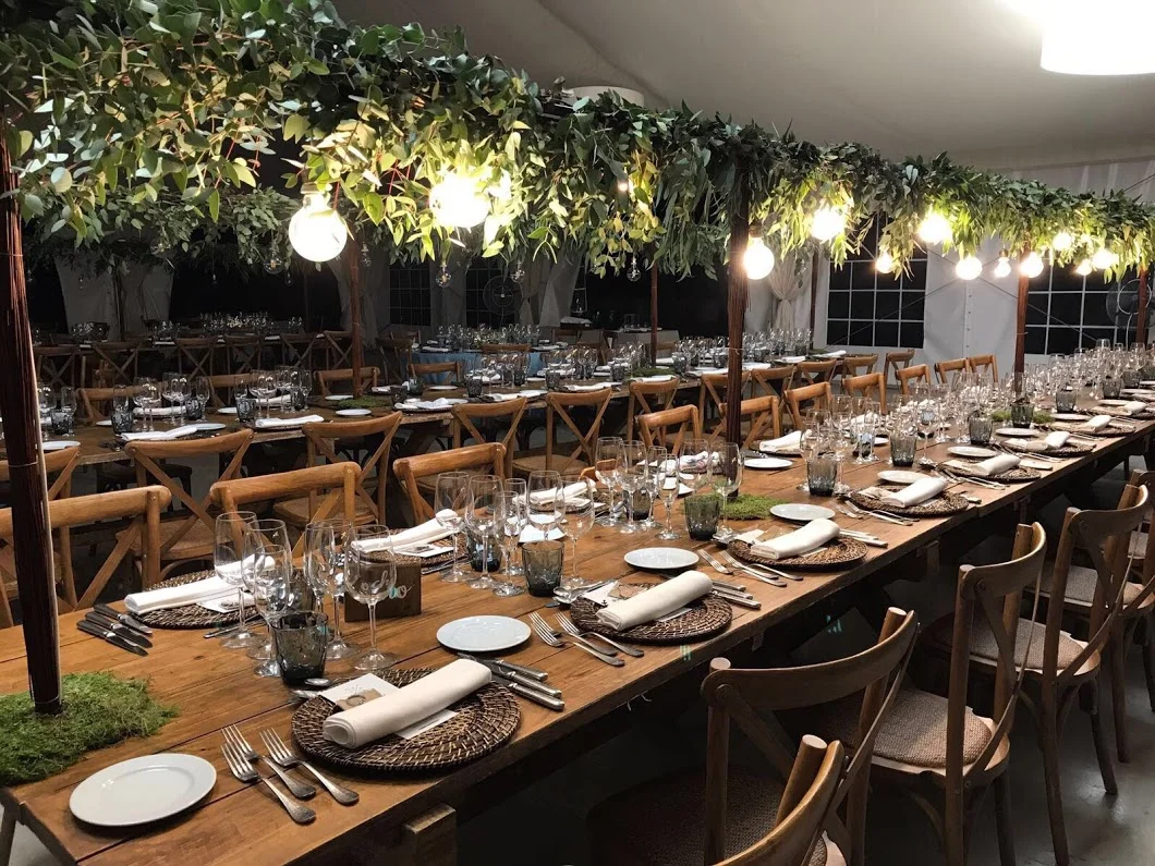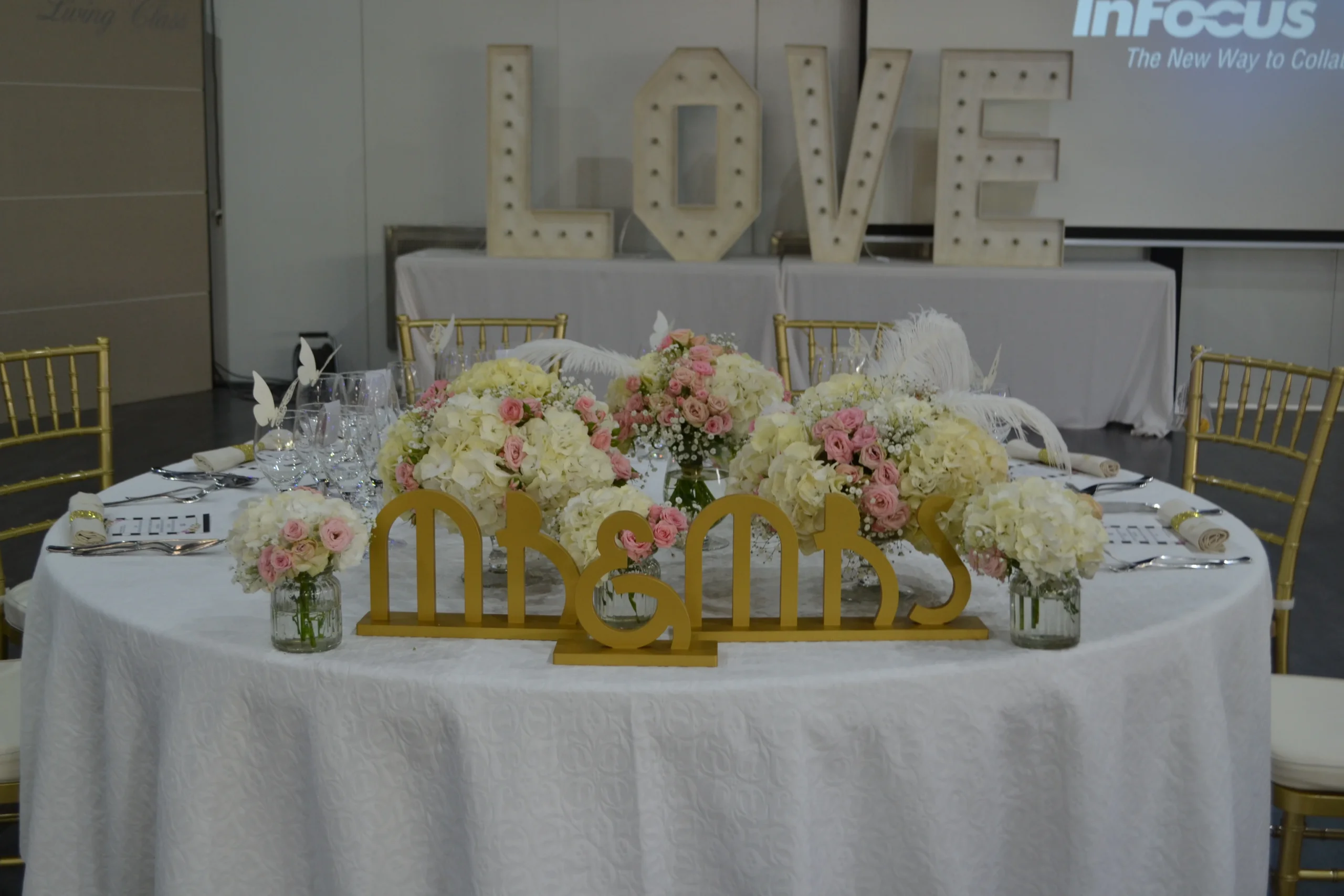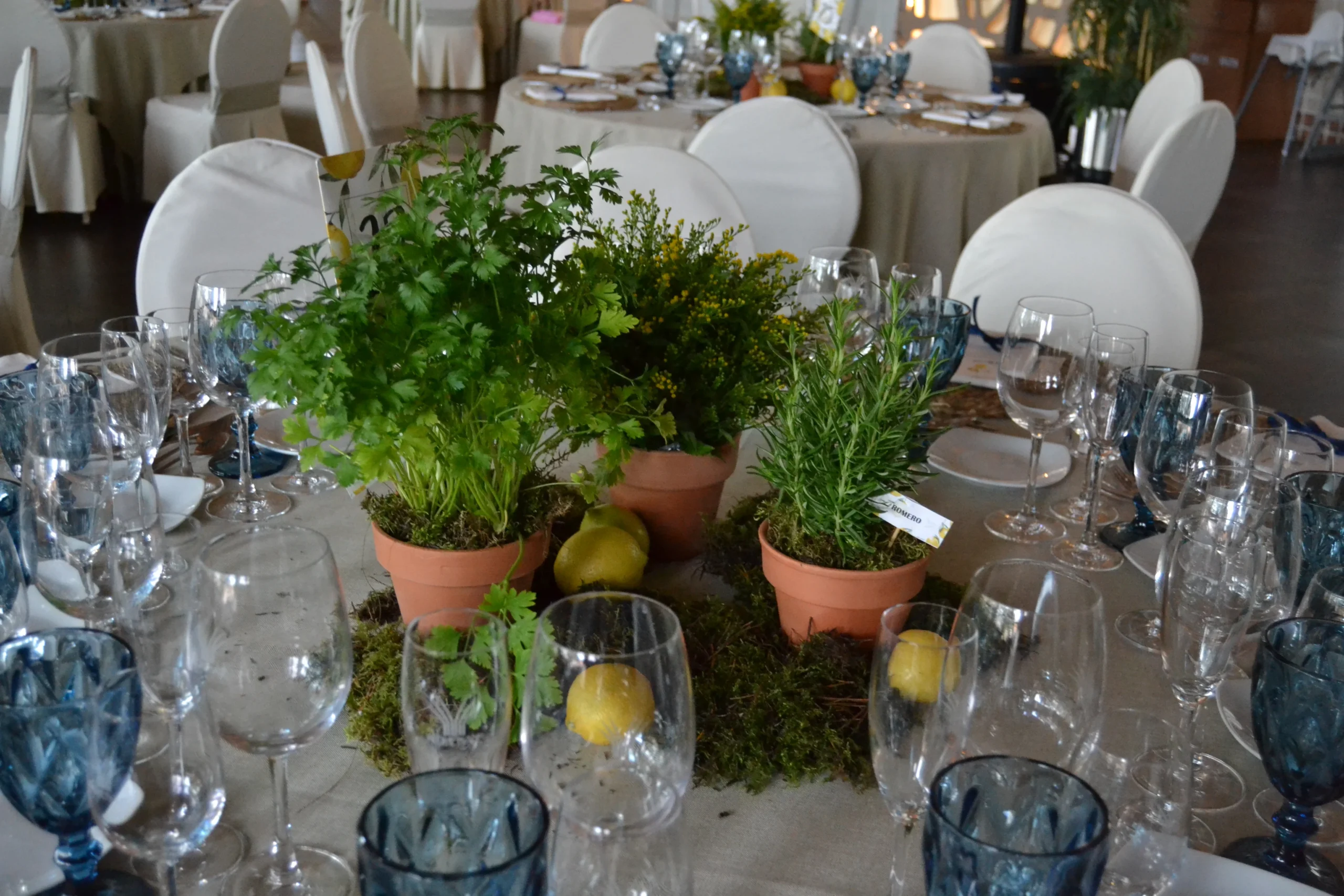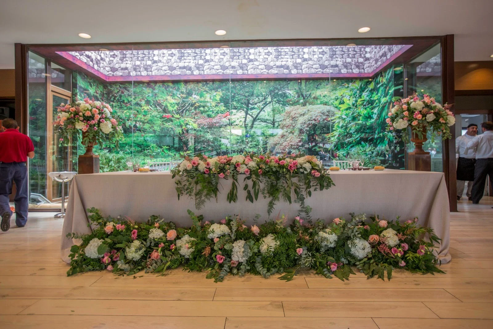 Tonos suaves, follaje delicado y velas para un ambiente íntimo.