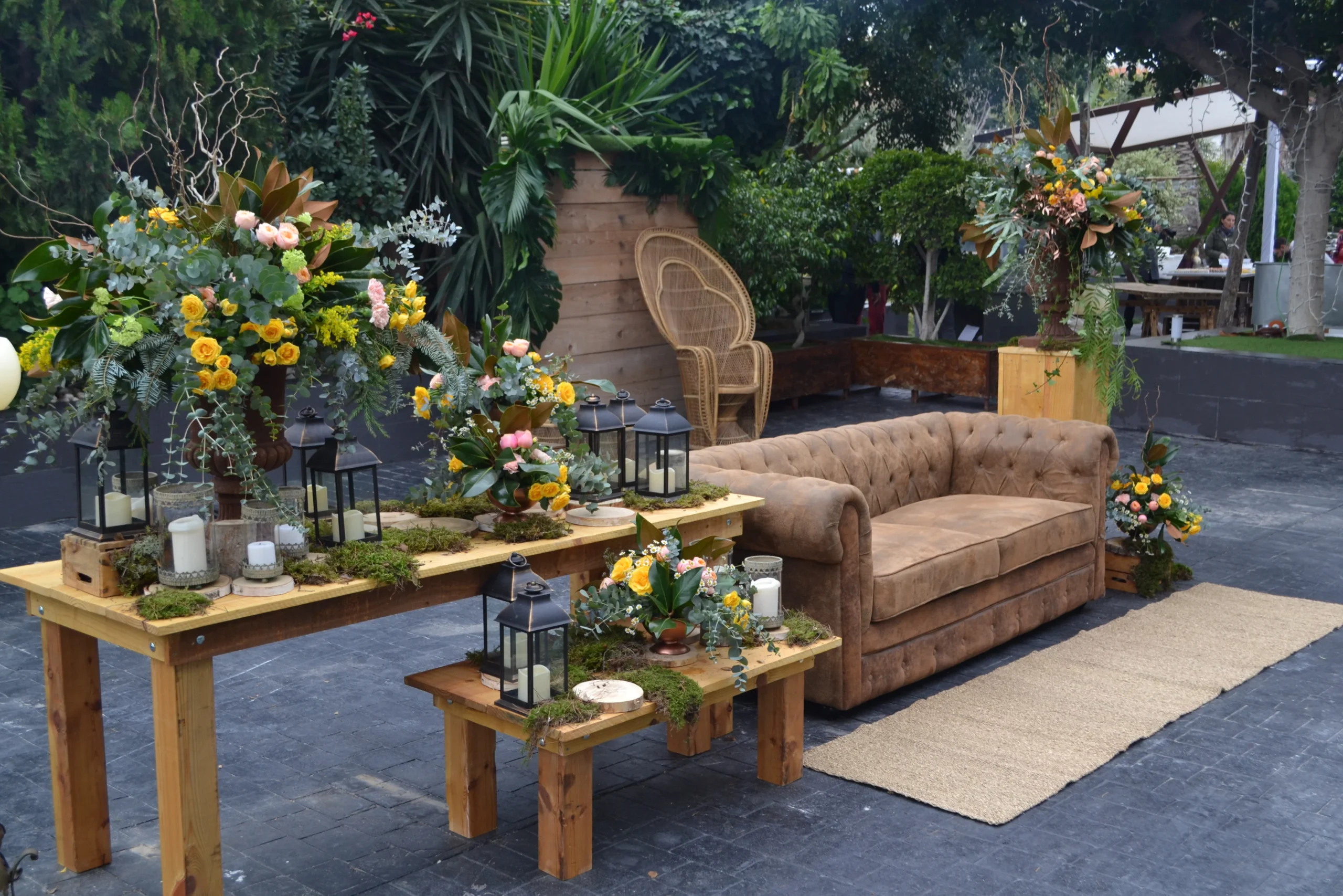 Áreas de descanso decoradas con flores para un toque sofisticado.